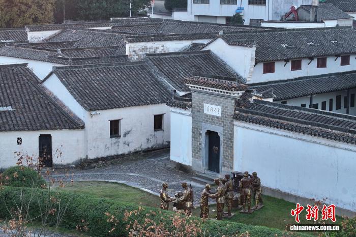 11月19日,位于安徽宣乡泾县云岭镇的新4军军部原址留念馆。该馆现存年夜礼堂等11处原址,经由过程本状罗列取博题铺览,表现新4军正在云岭时代的战役取死活场景。(无人机像片)中新社记者 韩苏本 摄
